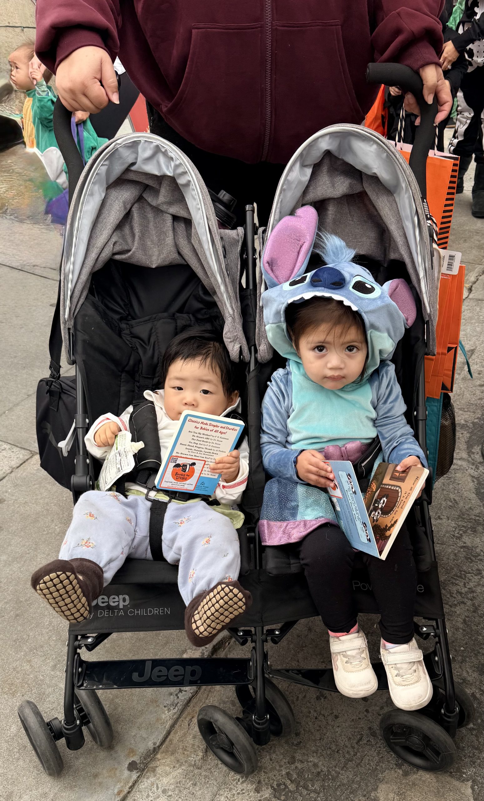 “I offered books this Halloween. Two children were so excited they left their sacks of candy at the door and took off with the books — they had to come back later and retrieve their candy (and they thanked me again for the books). Some of the older kids wanted to know if they could have more than one book.